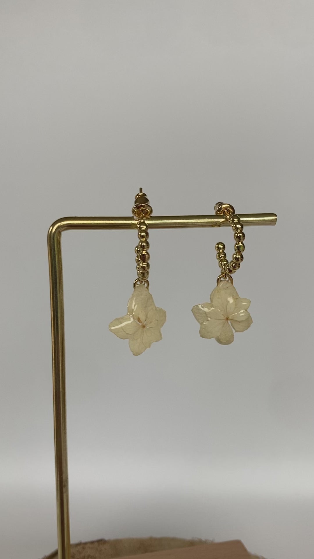 Boucles d'oreilles réalisées avec de véritables hortensias. Chaque fleur est cueillie, séchée, cristallisée, puis assemblée avec des pièces en