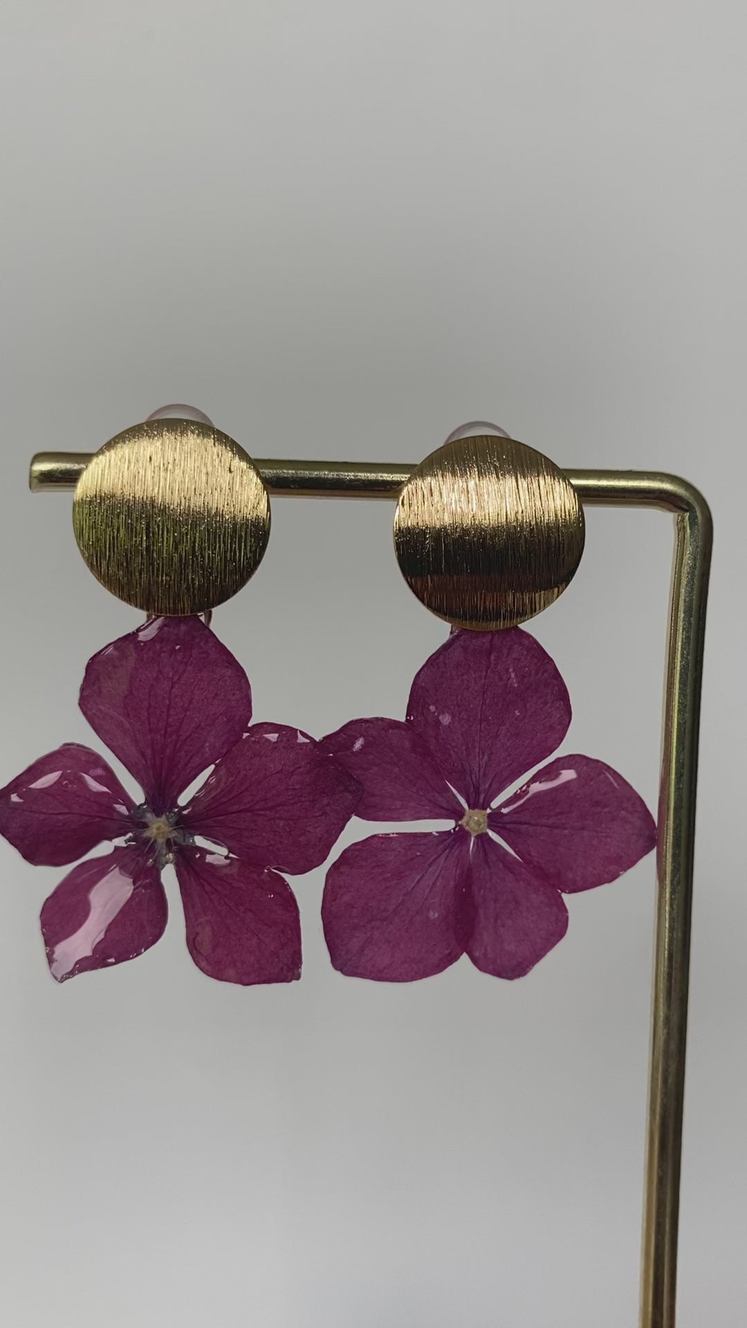 Boucles d'oreilles réalisées avec de véritables hortensias. Chaque fleur est cueillie, séchée, cristallisée, puis assemblée avec des pièces en