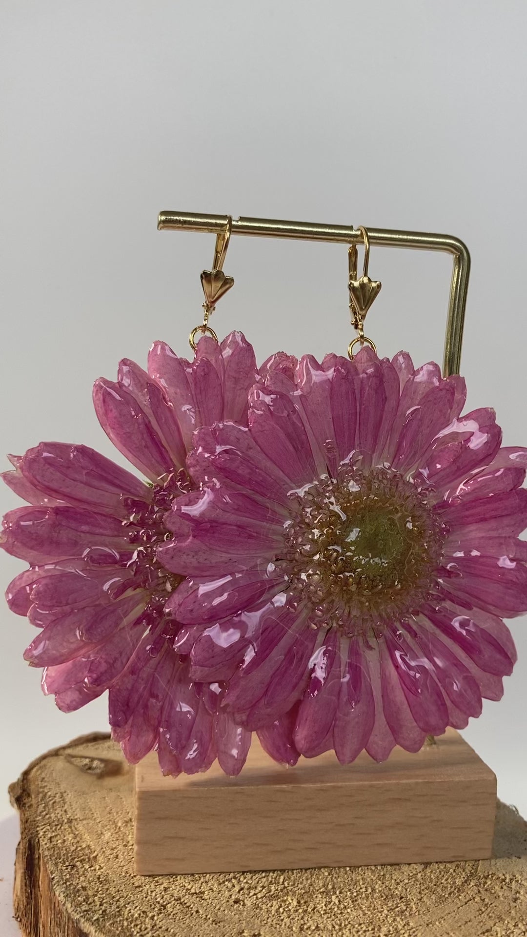 Boucles d'oreilles réalisées avec de véritables germini. Chaque fleur est cueillie, séchée, cristallisée, puis assemblée avec des pièces en