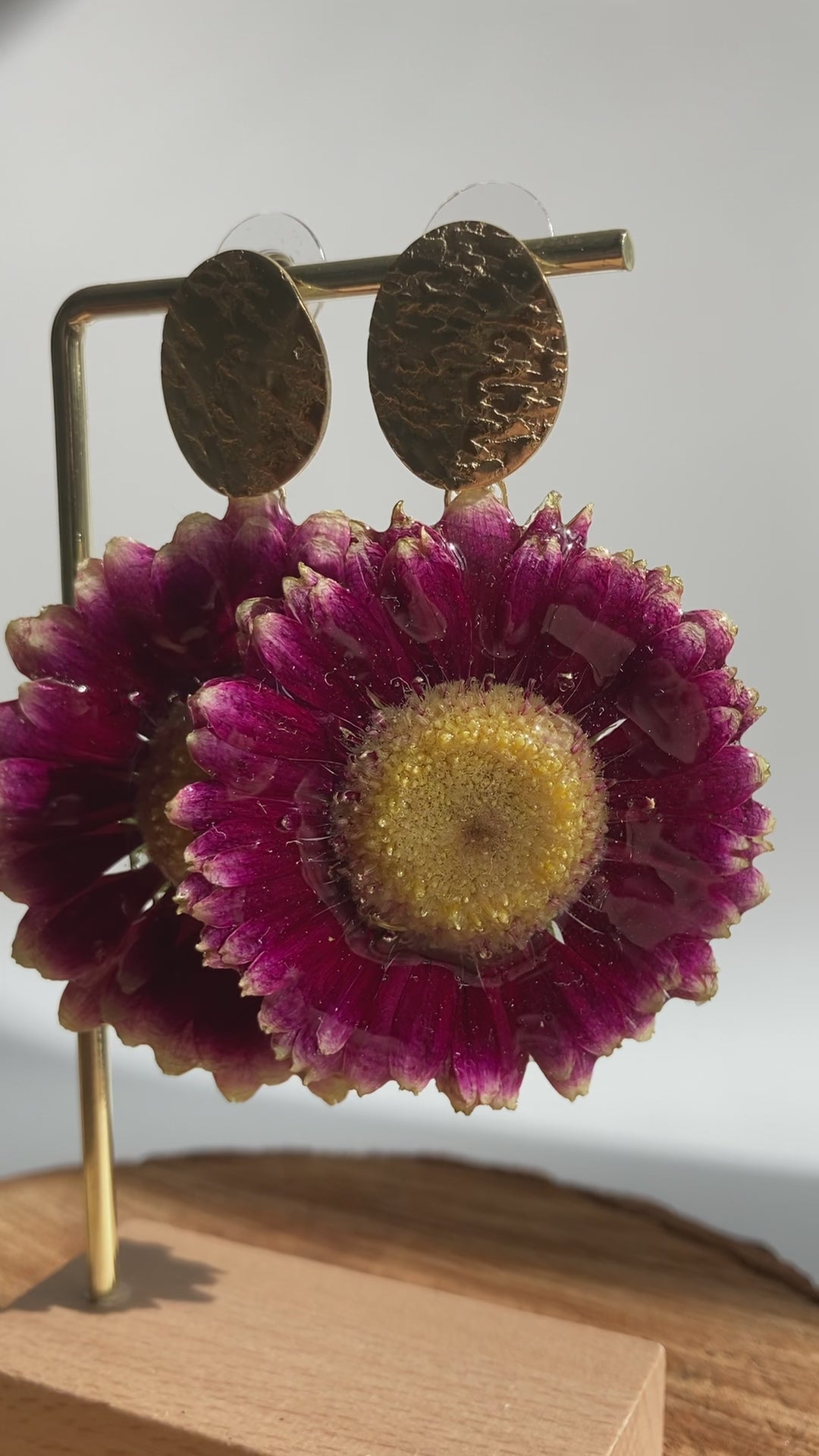 Boucles d'oreilles réalisées avec de véritables germini. Chaque fleur est cueillie, séchée, cristallisée, puis assemblée avec des pièces en